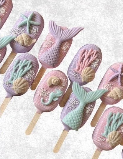 Our cake pops have been reinvented as popsicles! Sold by the dozen, each one is elegantly handcrafted to perfection. Dozens start at $65.