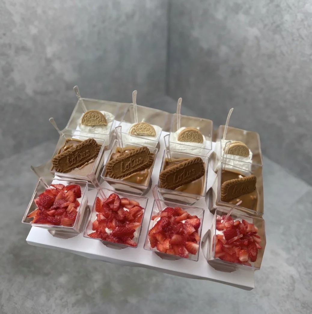 Our delicious cheesecake parfaits are available by the dozen, featuring three delectable flavors per dozen. Each dozen is $50, perfect for sharing or special occasions.